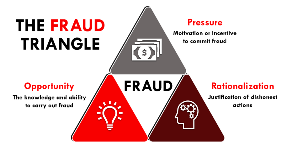 That pressure is the first piece of what experts call the Fraud Triangle. Coined by Dr. Steve Albrecht, the Fraud Triangle theory is used to explain the reasoning behind an individual’s decision to commit fraud by resolving the “why” and the “how.” The framework of the Fraud Triangle involves three components: (1) a perceived pressure, usually due to financial stressors; (2) rationalization; and (3) an opportunity to actually carry out the fraud. We see those three elements more frequently during economic downturns and recessions as financial strain becomes more prevalent and people feel they are forced to take drastic measures to stay afloat. That first element, pressure, may present itself in the form of wanting to maintain one’s lifestyle despite inflation and rising costs of living. Wide-scale layoffs are also more common during recessions, and people will face pressures when paying bills. Regardless of the specific reason, pressure inevitably increases during recessions as people struggle to meet their basic needs.